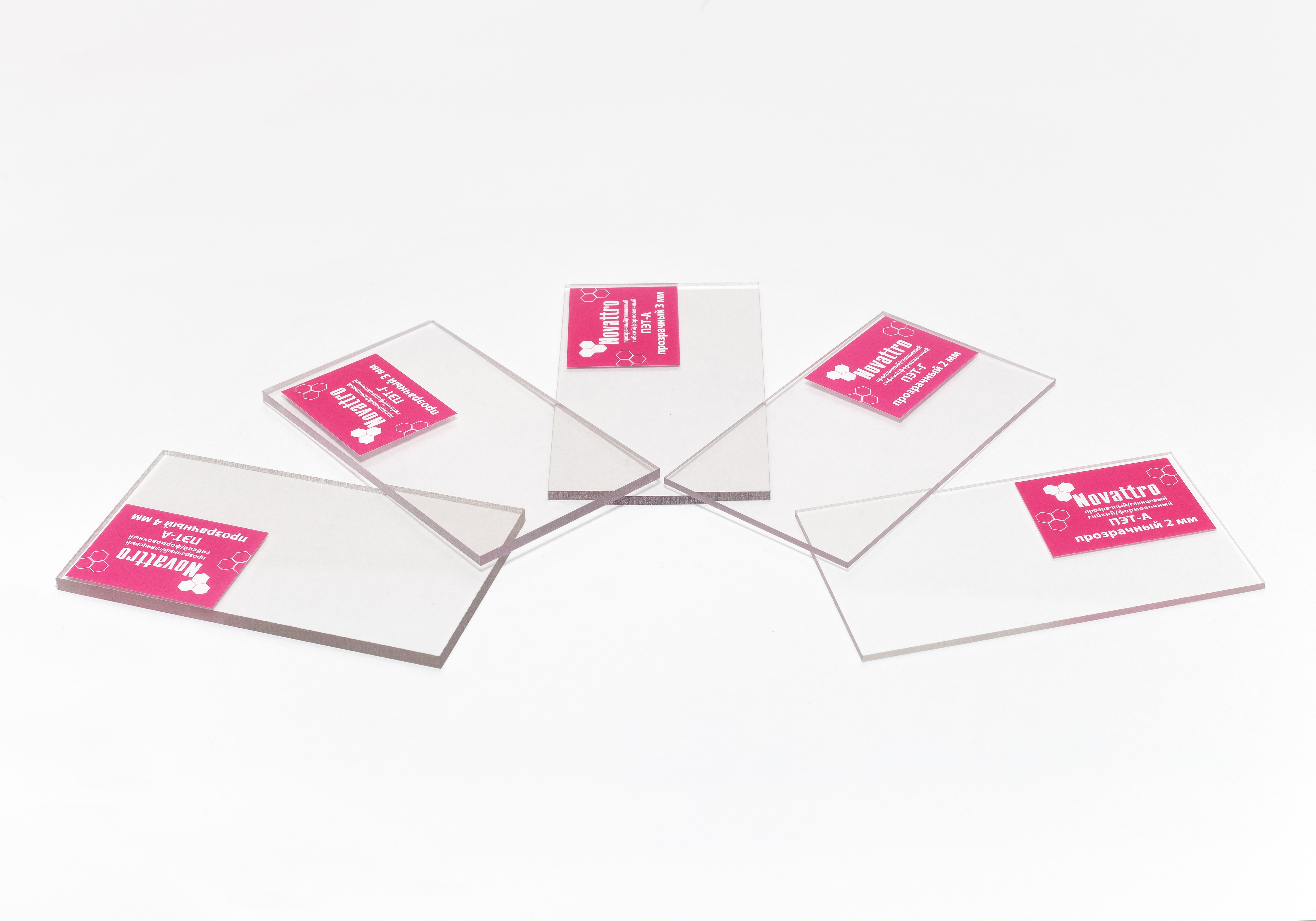 ПЭТ Novattro-Универсальный материал для специалистов любого уровня подготовки. Удобен в изготовлении любых изделий и конструкций рекламной отрасли, в промышленности и в быту. Прозрачный, прочный, с повышенной гибкостью - эти свойства позволяют применять листы ПЭТ Novattro минимальной толщины ≤ 0,3мм. Также превосходно формуется, режется лазером, используется для печати изображений.