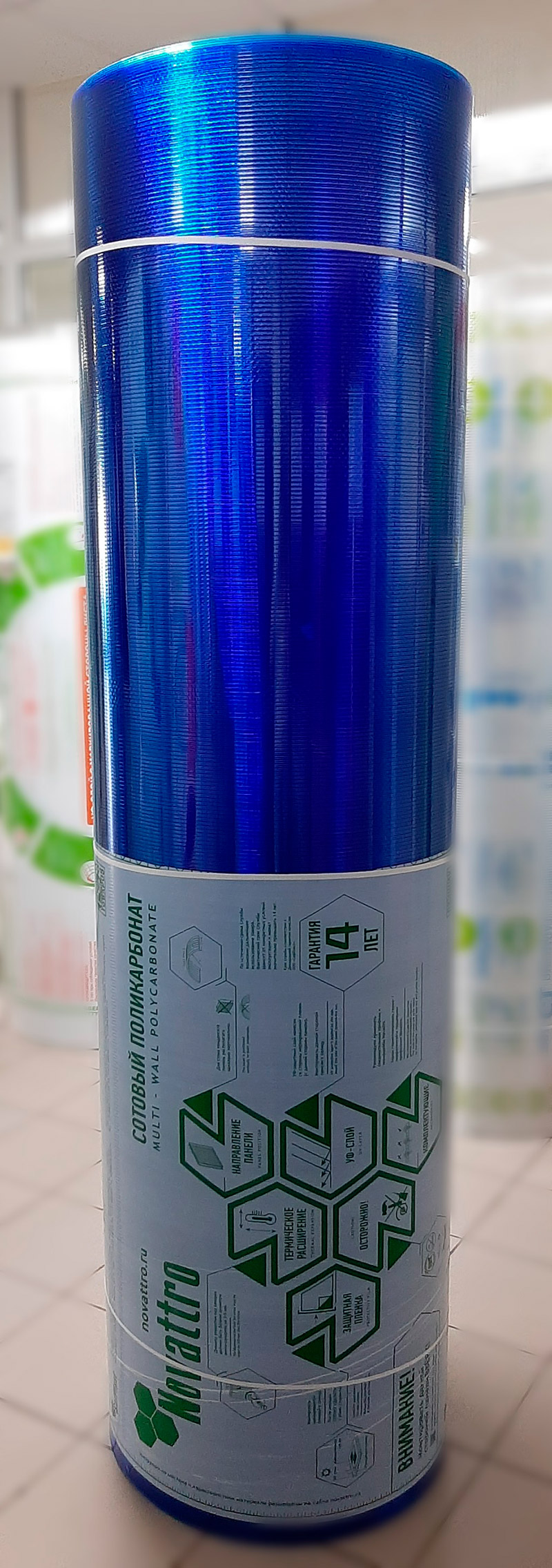 Сотовый поликарбонат 8 мм синий Novattro 2,1х6 м (12,6 кв.м) 1,4