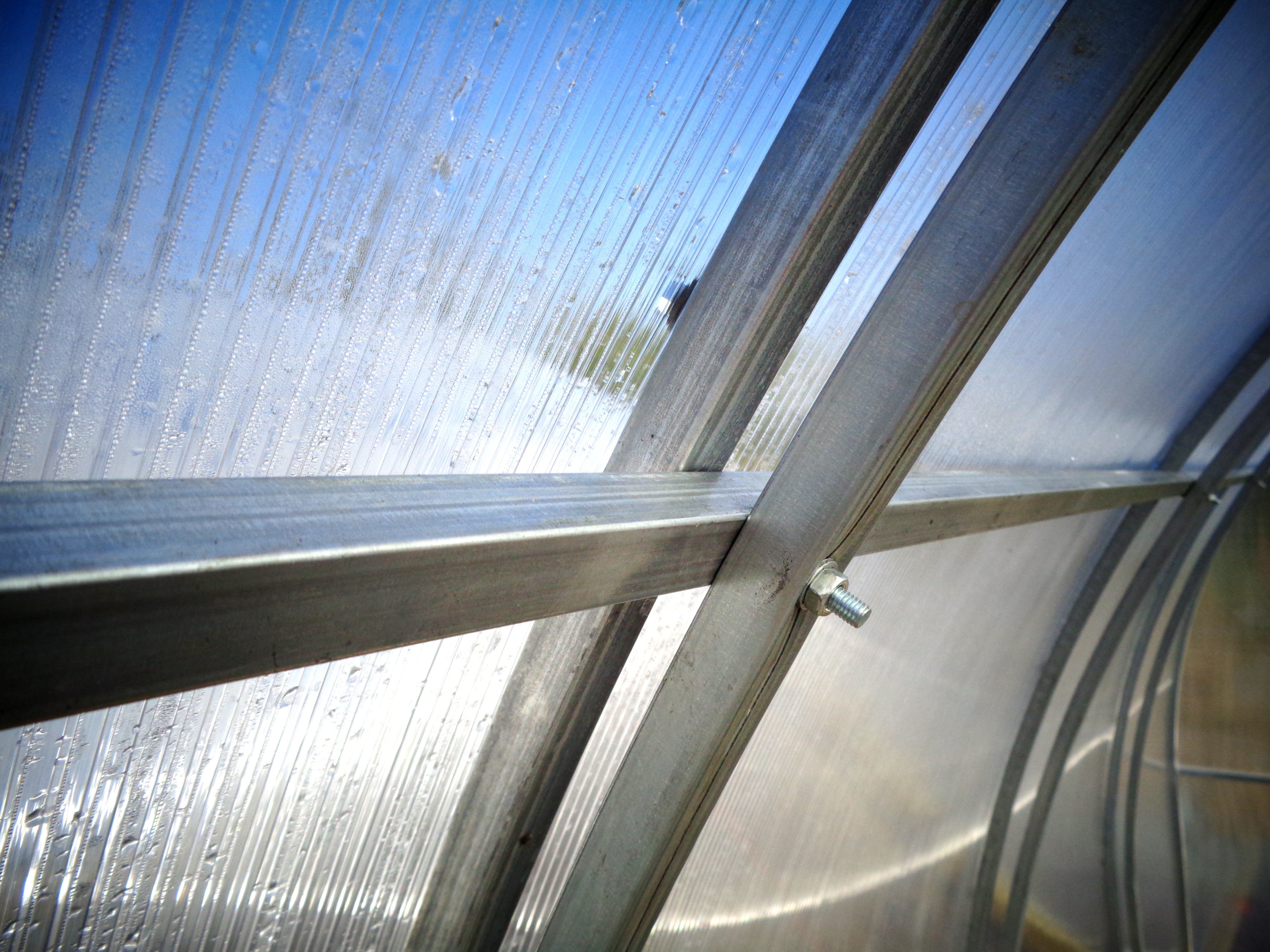 В комплект входят метизы для монтажа каркаса и для крепления поликарбоната.