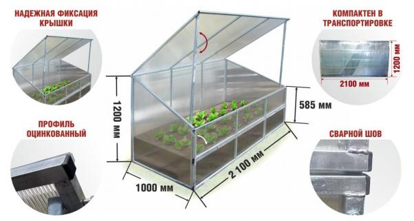 Теплица - мини (парник) "Парниша" 2,1х1х1,18м с поликарбонатом из оцинкованной проф.трубы 20х20